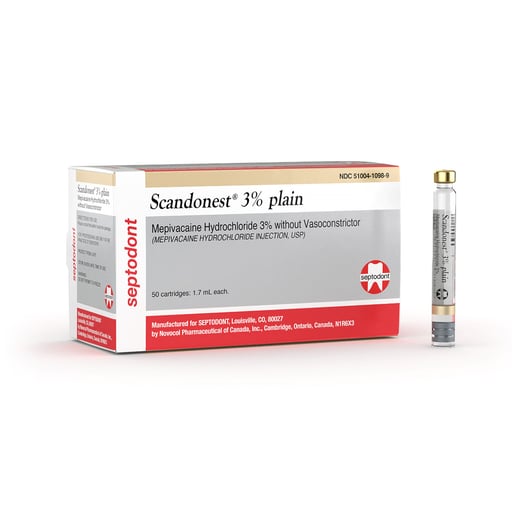 - Septodont 01-A1003 Scandonest 3% Plain Mepivacaine HCI 3% with no Vasoconstrictor 50/Pk 1.7mL Septodont 01-A1003 Scandonest 3% Plain Mepivacaine HCI 3% with no Vasoconstrictor 50/Pk 1.7mL