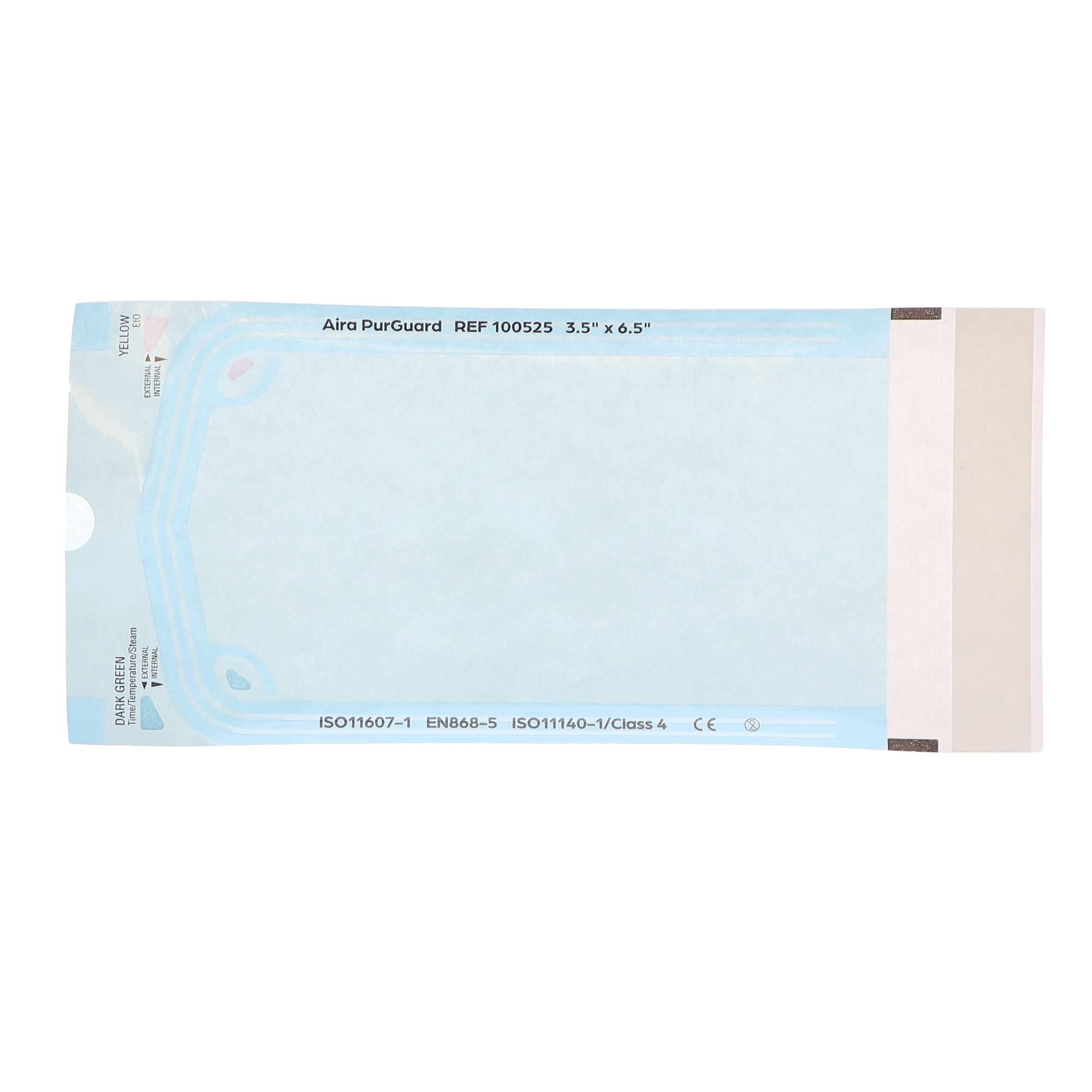 - Aira 100525 PurGuard Paper/Blue Film Self-Sealing Sterilization Pouches 3.50" X 6.5" 200/Bx Aira 100525 PurGuard Paper/Blue Film Self-Sealing Sterilization Pouches 3.50" X 6.5" 200/Bx