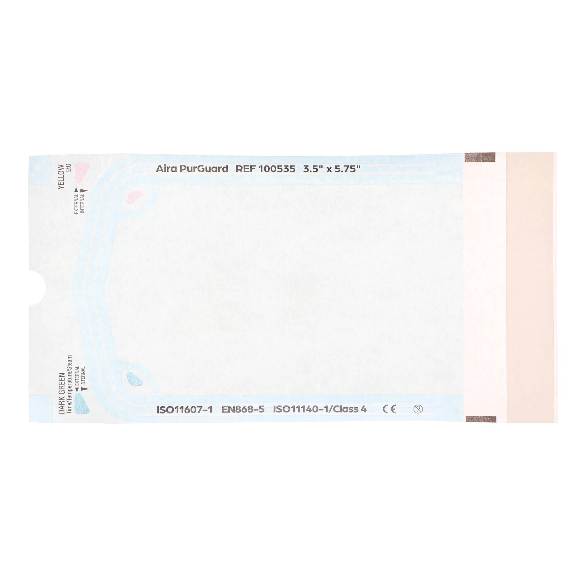 - Aira 100535 PurGuard Self-Sealing Sterilization Pouches 3.5" X 5.75" Paper/Blue Film 200/Bx Aira 100535 PurGuard Self-Sealing Sterilization Pouches 3.5" X 5.75" Paper/Blue Film 200/Bx