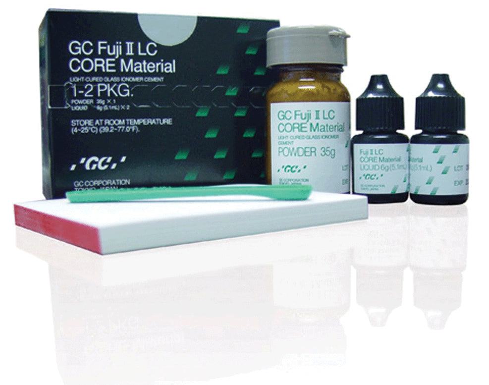 - GC 000181 Fuji II LC Core Triple-Cure Resin Reinforced Glass Ionomer Core Build-Up Material 1:2 GC 000181 Fuji II LC Core Triple-Cure Resin Reinforced Glass Ionomer Core Build-Up Material 1:2
