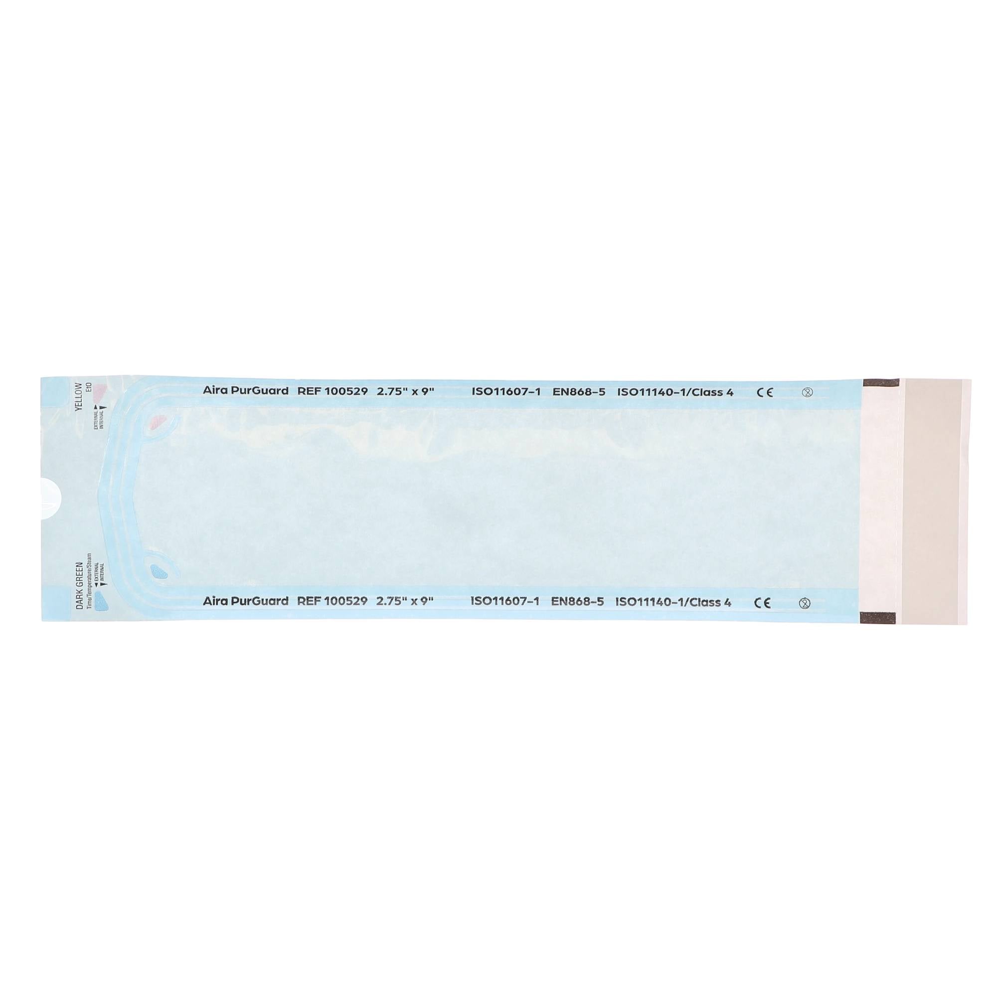 - Aira 100529 PurGuard Self-Sealing Sterilization Pouches 2.75" X 9" Paper Blue Film 200/Bx Aira 100529 PurGuard Self-Sealing Sterilization Pouches 2.75" X 9" Paper Blue Film 200/Bx