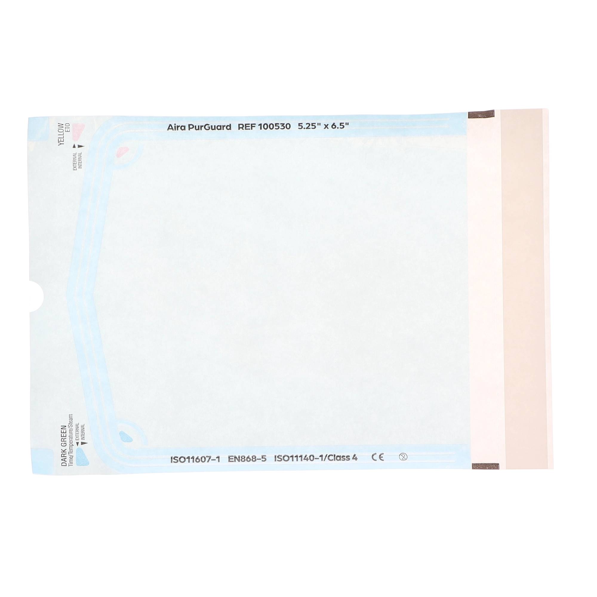 - Aira 100530 PurGuard Self-Sealing Sterilization Pouches 5.25" X 6.5" Paper Blue Film 200/Bx Aira 100530 PurGuard Self-Sealing Sterilization Pouches 5.25" X 6.5" Paper Blue Film 200/Bx