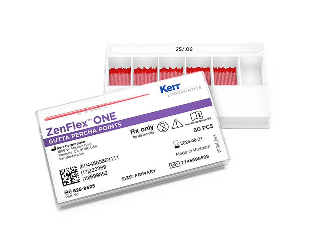 - Kerr Dental 825-9525 ZenFlex ONE Gutta Percha Points #25 .06 Taper Primary 50/Pk Kerr Dental 825-9525 ZenFlex ONE Gutta Percha Points #25 .06 Taper Primary 50/Pk