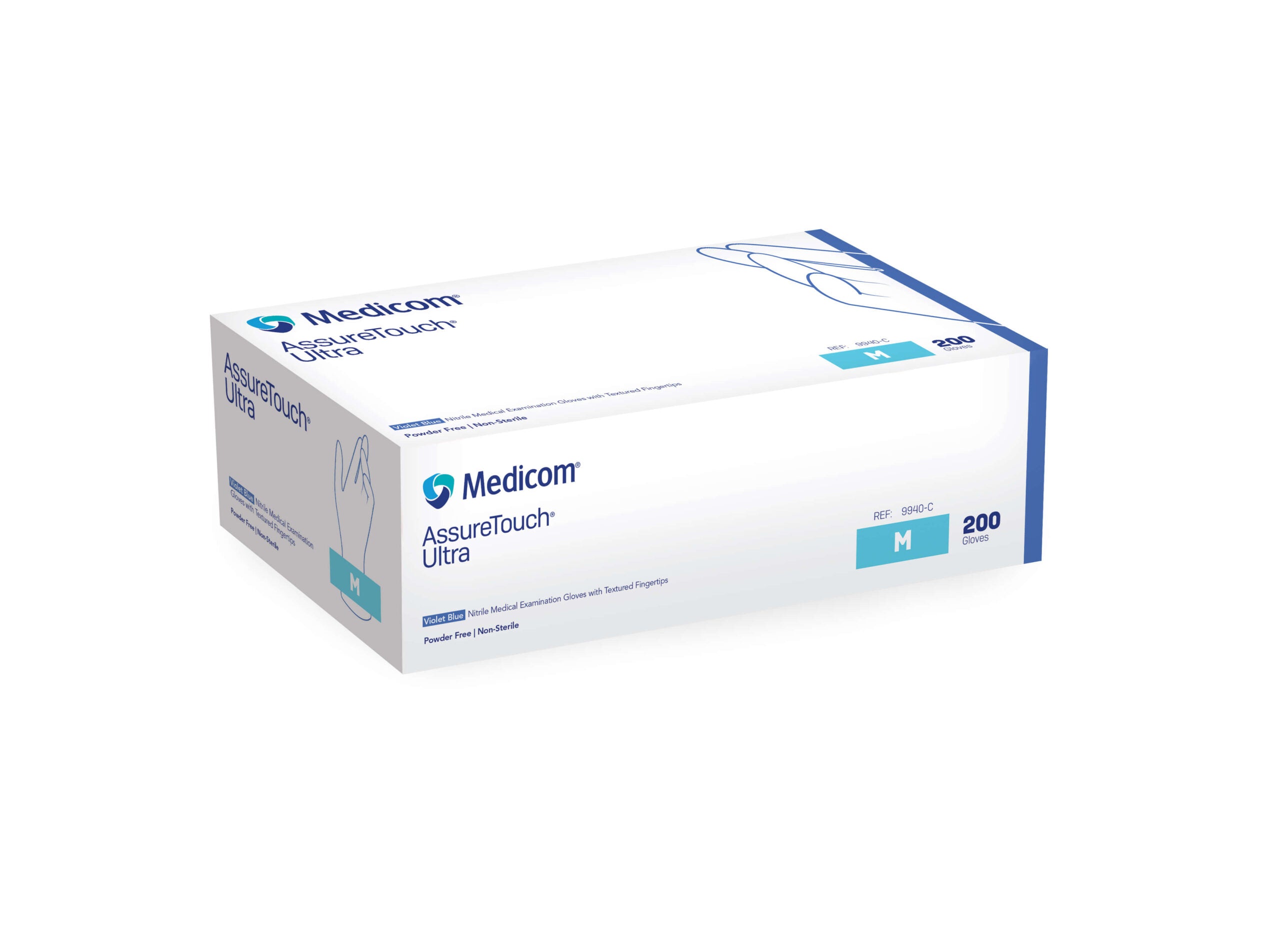 - Medicom 9940-C AssureTouch Ultra Nitrile Medical Exam Gloves Medium Violet Blue 200/Pk Medicom 9940-C AssureTouch Ultra Nitrile Medical Exam Gloves Medium Violet Blue 200/Pk