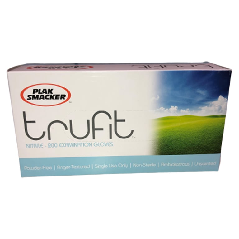 - Plak Smacker 200055 Trufit Nitrile Exam Gloves Large Sky Blue 200/Pk Plak Smacker 200055 Trufit Nitrile Exam Gloves Large Sky Blue 200/Pk