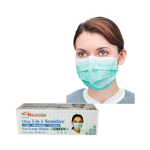 - ValuMax 5630E-GR Ultra 3-in-1 Earloop Face Masks Green 50/Bx ValuMax 5630E-GR Ultra 3-in-1 Earloop Face Masks Green 50/Bx